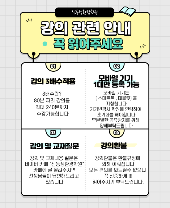 여러분이 원하시는 동영상 강좌를 선택하여 수강신청을 하시기 바랍니다.